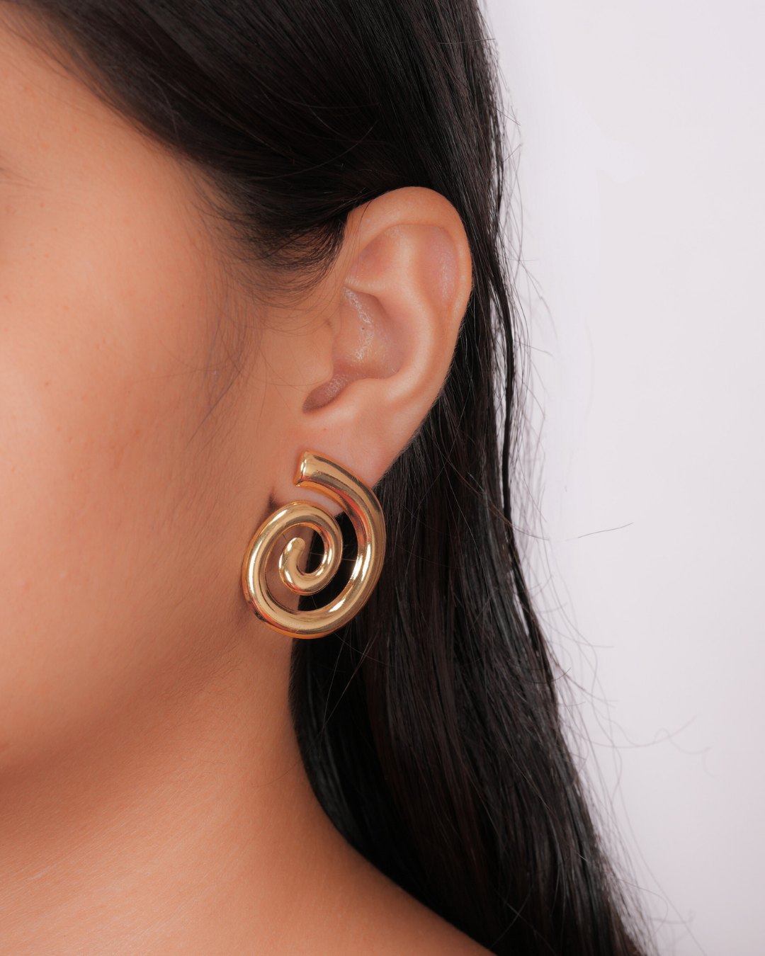 Bold golden wave earrings crafted in stainless steel – waterproof, skin-friendly, and a true statement piece for any look.